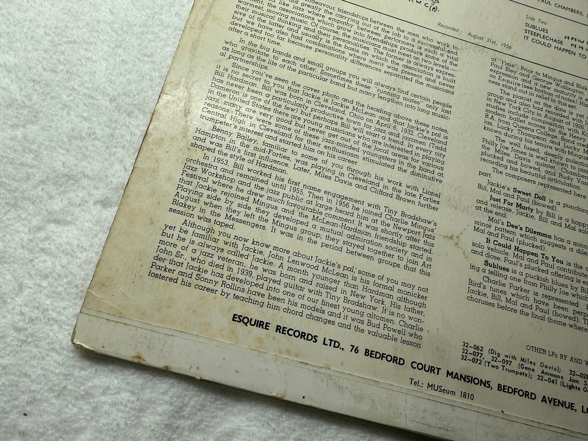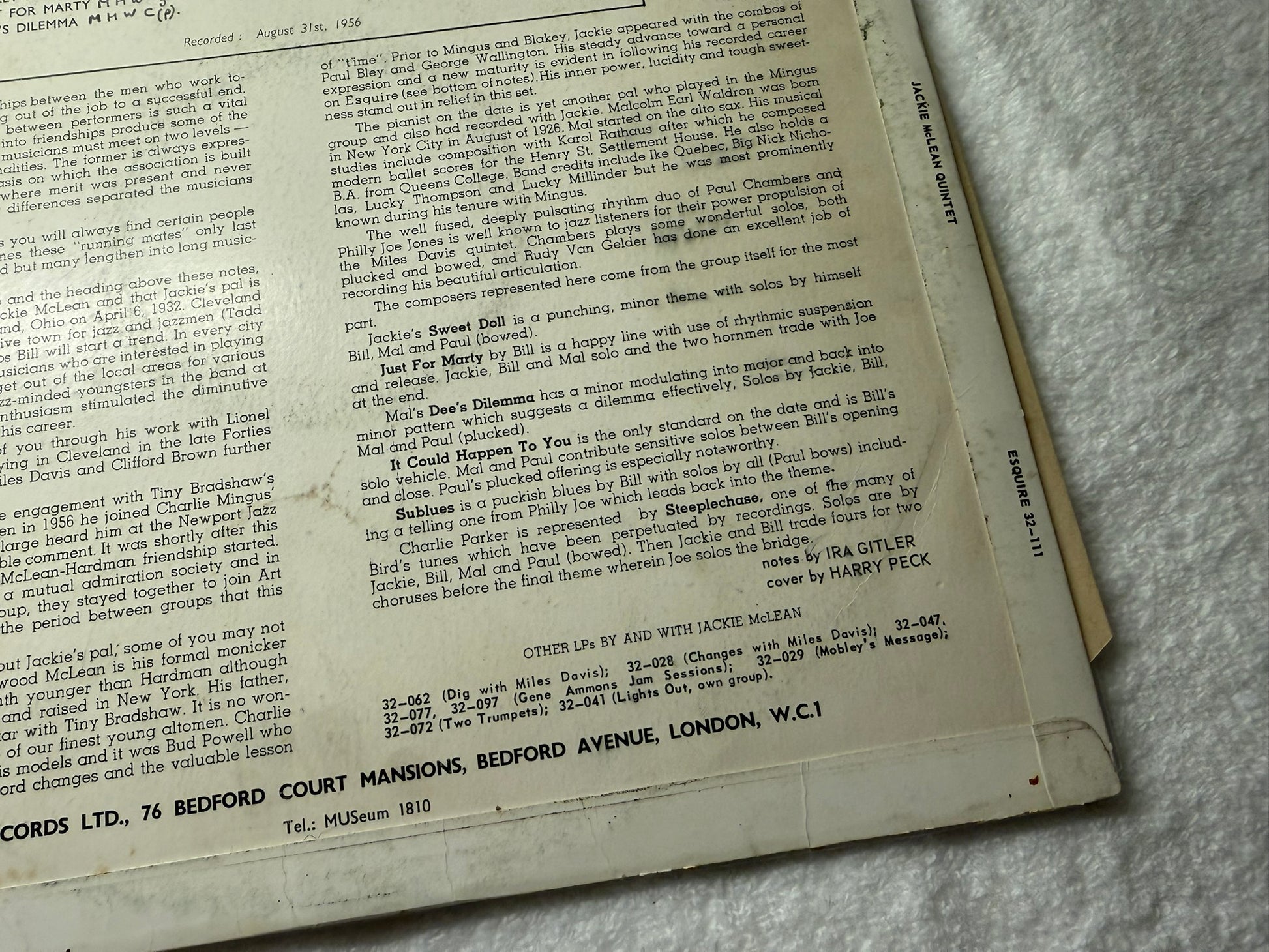 Jackie McLean Quintet Introducing Bill Hardman – Jackie's Pal UK 1st Esquire 32-111