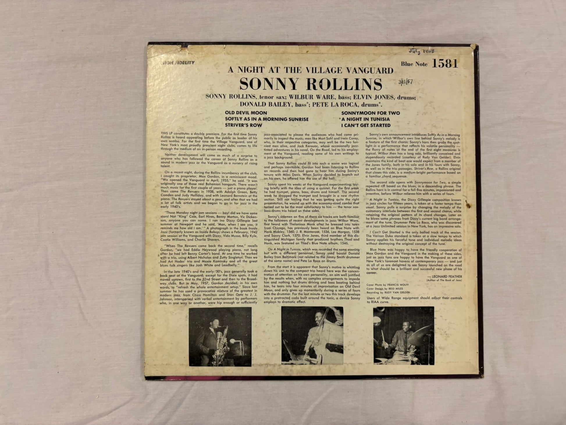 Sonny Rollins - A Night At The Village Vanguard LP US Original Mono Blue Note BLP 1581